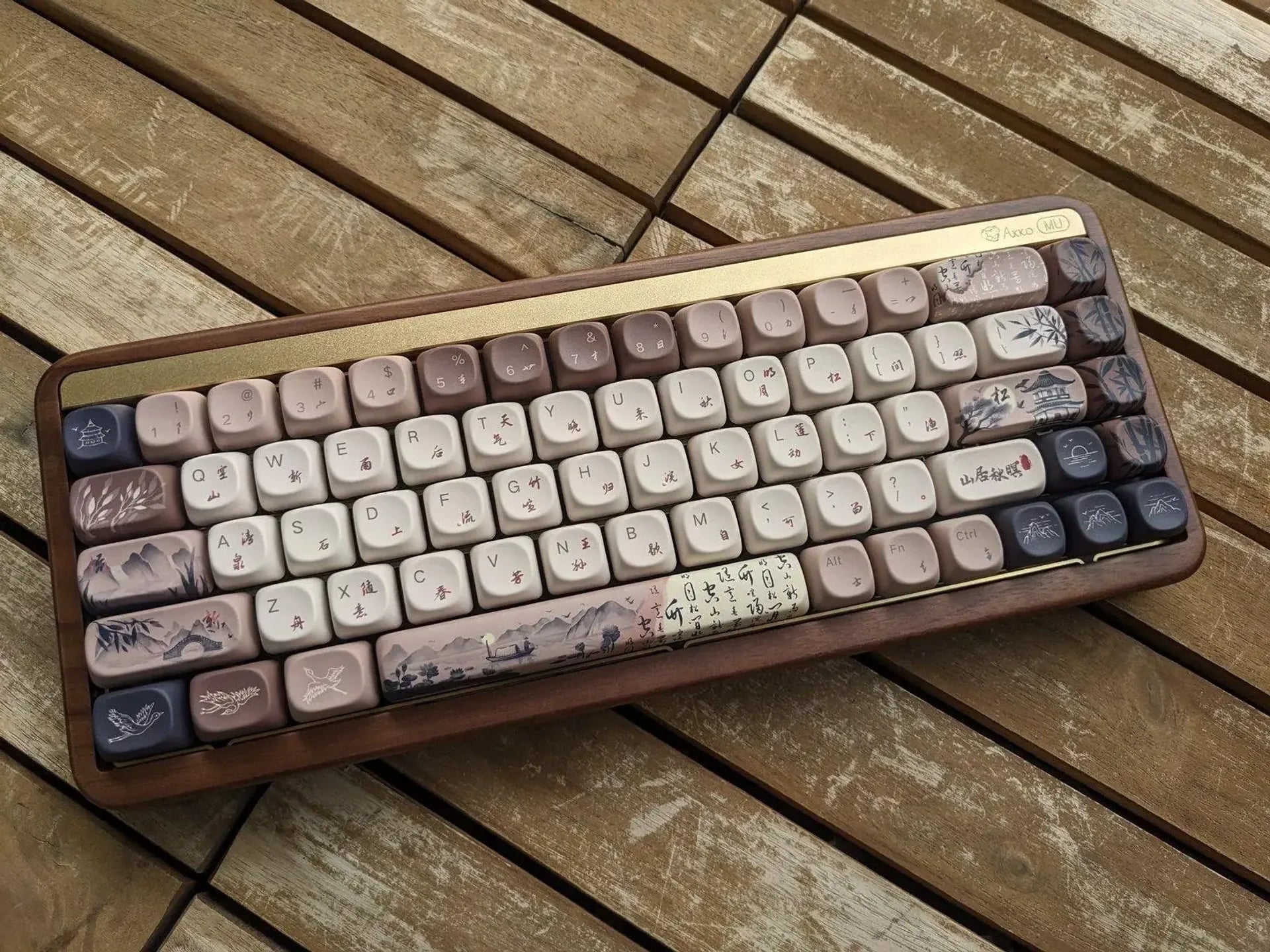 El Akko MU01 es una pieza única que combina diseño artesanal y tecnología de alto nivel. Su cuerpo de madera de nogal le da un carácter exclusivo y sofisticado, mientras que su construcción con montaje gasket y sistema de insonorización de 5 capas ofrece una experiencia de escritura suave, silenciosa y precisa.
